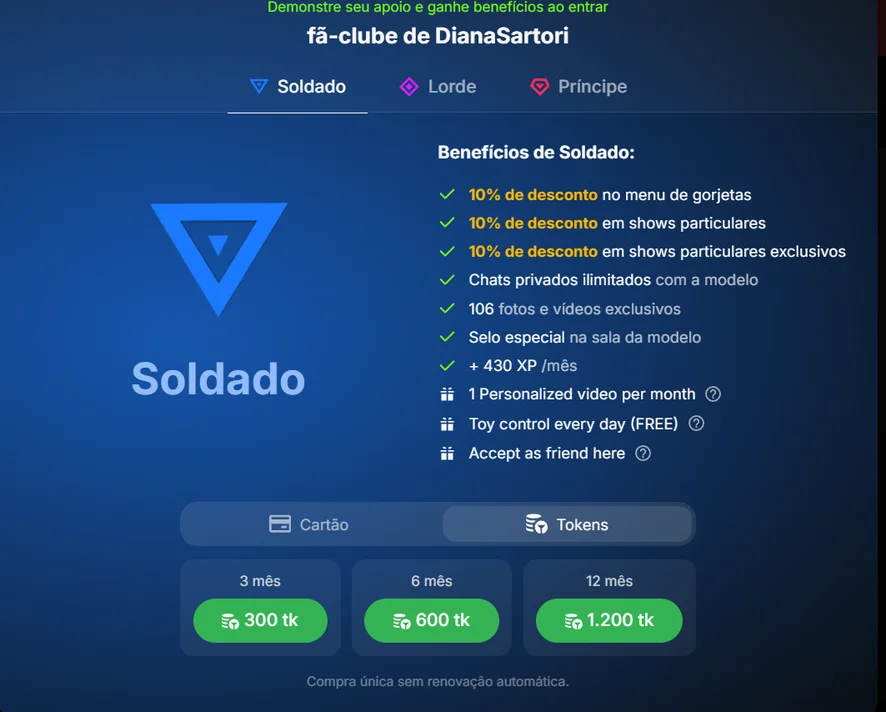 - 2 vídeos personalizados por mês de até 3 minutos cada (com exceções)