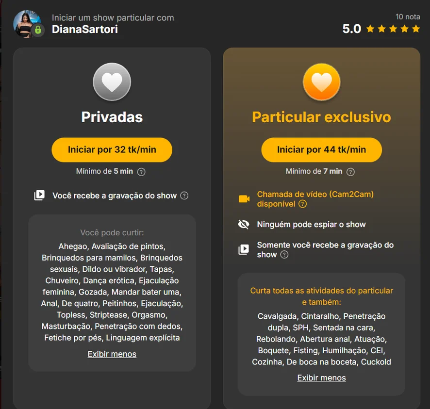 Um(a) dos(as) modelos mais bem classificados(as) em shows Privados